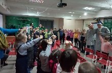 Новогоднее представление перед началом спектакля с участием Деда Мороза, Снегурочки и сказочных персонажей было весёлым, зажигательным. Ребята играли в разные игры, танцевали, пели песни. Детям очень понравилось, они остались довольными!
