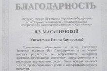 Поздравляем! Масалимову Наилю, ученицу 11б класса – лауреата премии президента РФ по поддержке талантливой молодежи в рамках приоритетного национального проекта «Образование». Пожелаем Наиле дальнейших успехов и побед!
