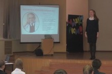 27 ноября в гимназии в рамках проекта «Образование. Сочи 2014» прошел урок литературы в 6б классе на тему «Ода спорту». Подготовила и провела урок учитель русского языка и литературы высшей категории Хайрутдинова М.И..На уроке ребята представили стихи своего сочинения на тему спорта в разных жанрах – гимна, оды, наставления. Кроме того педагог организовал встречу ребят с профессиональной спортсменкой-волейболисткой Чесноковой О.А. – мамой одной из учащихся 6 б класса Чесноковой Софьи.