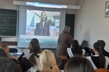 Юнармейцы нашей гимназии Гумирова Лилия, Богданова Алина, Гайфуллина Сафина, Гильманова Азалия, Яруллина Валерия, Лабоскина Полина провели интерактивную викторину ко Дню народного единства в 7 классах.