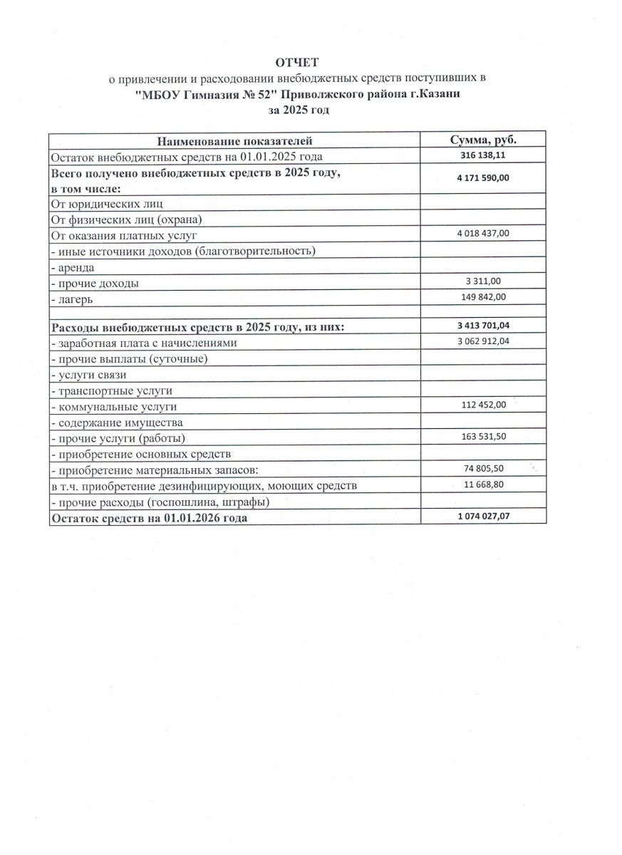 Отчет о привлечении и расходовании внебюджетных средств за 2025 год