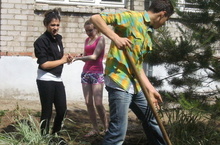 Все школьники проходят трудовую практику на пришкольном участке со своими классами по графику.