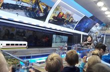 21 сентября учащиеся 3А класса посетили на станции «Казань» уникальный поезд-музей – передвижной выставочно-лекционный комплекс ОАО «РЖД». Он включает 8 выставочных вагонов, каждый из которых посвящен какому-либо инновационному проекту или компании, представляющей свои проекты: ОАО «РЖД» − «Развитие скоростного и высокоскоростного движения в России», «Подвижной состав российских железных дорог», «Инфраструктура железных дорог», «Молодежная и кадровая политика», «Тренажерные комплексы железных дорог», «Энергосбережение, энергоэффективность и экологическая безопасность», «Конференции и лекции»; госкорпорации «РОСНАНО» − «Нанотехнологии»; госкорпорации «Росатом» − «Современные ядерные технологии». В выставочных вагонах представлены макеты современного подвижного состава: газотурбовоза, грузового вагона для перевозки угля, пассажирских электровозов, тепловоза, двухэтажного пассажирского вагона. Здесь можно познакомиться с историей развития отечественного железнодорожного транспорта, а также с современной инфраструктурой железнодорожной сети страны. В частности, демонстрируются уменьшенные копии железнодорожного терминала аэропорта Адлера и железнодорожного комплекса на космодроме «Байконур». 34 макета подвижного состава и инфраструктуры железнодорожного транспорта демонстрируют эволюцию железнодорожной техники – от паровоза Черепановых до подвижного состава наших дней.