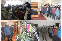 им расскзали об особенностях службы современного солдата, показали как они живут, что едят, обучили некоторым навыкам