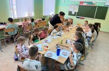 После вкусного и полезного завтрака детей ждал мастер-класс от "Города мастеров". Ребята коллективно изготовили плакат ко Дню России. Работа получилась очень яркая. Все остались довольны не только результатом, но и совместной работой каждого участника процесса. -