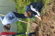 В рамках городского проекта " Растем вместе" , в целях воспитания бережного отношения к окружающей природе, учащиеся 2 и классов посадили саженцы сосен. Им помогали учащиеся 7 классов.
