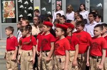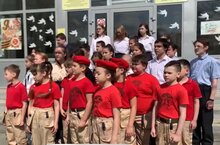 В предверии великого праздника- Дня Победы, учащиеся 3-6 классов исполнили песню "Катюша"
