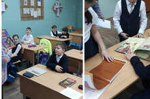 Сегодя в нашей школе библиотекарь Нина Григорьевна в 1-х и во 2-х классах провела урок патриотизма "Единством Россия сильна"