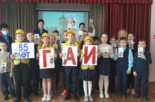 Отряд ЮИД, учащиеся четвертых классов и представитель ГИБДД провели мероприятие, приуроченное к юбилею ГАИ. Ребята повторили правила поведения на дороге, посмотрели выступление агитбригады, ролик по правилам дорожного движения.Сотрудник ГИБДД вручил ребятам форму и символику отряда ЮИД.