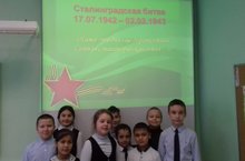 Особое внимание патриотическому воспитанию уделяется в начальной школе. Классный руководитель 4б класса (Шигапова Р.Р.) провела классный час, посвящённый генеральным сражениям под Сталинградом. Дети узнали о подвигах Михаила Паникаха, телефониста Михаила Путилова, которые ценой своих жизней приближали победу. Также дети узнали, что для их классного руководителя - дата освобождения Сталинграда - особая дата. Из выступления учителя: "В боях за освобождение Сталинграда погиб мой дедушка. Видела его только в семейном альбоме и читала о его подвиге в Книге Памяти...". -