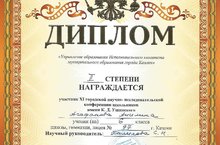 24 ноября 2018 года в гимназии №37 прошла XI городская научно-исследовательская конференция школьников им К.Д.Ушинского. В мероприятии активное участие приняли и учащиеся нашей школы. Агафонова Ангелина, ученица 6 класса, представив свою работу "Слова-паразиты", написанную под руководством Халиловой С.Н., удостоилась диплома II степени. Восьмиклассница Абророва Алия с той же наставницей также отличилась среди сверстников. Она, защитив проект "Русский язык в мире рекламы", получила грамоту. Дети чтениями остались очень довольны.