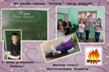 Второй день в нашем отряде "Костёр" богат на события!Во-первых, мы отметили день рождения нашего товарища Ранэля. Девочки подготовили ему сюрприз в виде рисунка.Во-вторых, мы приняли участие в мастер-классе "Изготовление букетов". Если вы думаете, что ложки нужны только на кухне, то вы глубоко заблуждаетесь! Вот пример - подтверждение вашему заблуждению! Наши букеты - из обычных одноразовых ложек, обернутые в бумагу. -
