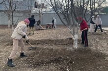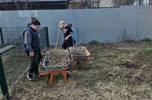 Уборка школьной территории продолжается.