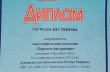 Поздравляем хореографический коллектив "Хорошее настроение" в номинации "Народный танец" II-я возрастная категория (10 - 12 лет) и руководителя Бикчантаеву Регину Рифовну, ставших Лауреатами III степени во Всероммийском фестивале-конкурсе "Жаворонок"