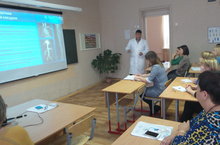 Сегодня была проведена лекция для сотрудников школы, проведённая представителями диагностического центра «БАРСМЕД», располагающих высокотехнологичным оборудованием, позволяющим проводить полноценную диагностику всего организма даже на самых ранних сроках заболевания. В ходе лекции учителя ознакомились с самыми распространёнными причинами таких заболеваний как остеопороз, поражения нервно-мышечной системы, онкологических заболеваний, характерными чертами которых является изначально «скрытое» развитие и достаточно серьёзный и трудоемкий процесс лечения на более поздних стадиях. И стоит помнить, что даже самый страшный диагноз – это не приговор.