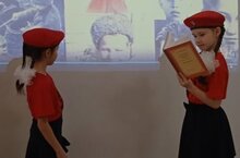 Ученица 3б класса Газизова Зарина получила кубок юного игрока. -
