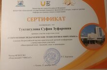 21 декабря, учитель английского языка Туктагулова Суфия Зуфаровна стала участником круглого стола "Современные педагогические технологии в мире языка" в рамках Всероссийской научно - практической заочной конференции с международным участием "Иностранный язык: традиции, опыт и инновации".