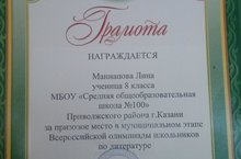 Муниципальное бюджетное общеобразовательное учреждение «Средняя общеобразовательная школа №100 - Центр образования» Приволжского района г.Казани - новости