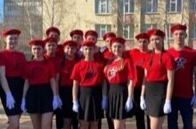Сегодня ученики нашей школы, юнармейцы 9 класса, приняли участие в районном конкурсе смотра строя и песни.