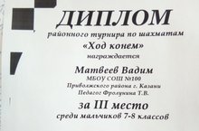 Поздравляем Матвеева Вадима, занявшего III место в X региональном шахматном турнире "Ход конем"