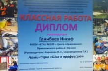 Поздравляем ученика 8 класса Ганибаева Инсафа, победившего в номинанции "Шаг в профессию" районного конкурса профессий "Классная работа"