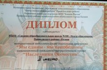 27 октября 2018 года совместно с первичной организацией ВПП «Единая Россия» по Приволжскому району была проведена интерактивная познавательно-творческая программа «Мы едины – мы непобедимы» в рамках реализации гражданско-патриотического проекта «Наследники Отечества». В программе приняли участие команды учащихся школ №100, 88, 48, 17 Приволжского района города Казани. Команда нашей школы 100 взяли 2-е место!!!! Молодцы!!!!!!