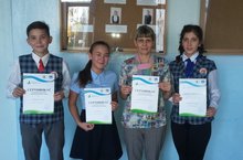 6 октября 2017 года отделение Русского географического общества в РТ вручило ученикам нашей школы Шарафутдиновой Дарье (7 М), Нигматуллину Эмилю (8 Б), Валеевой Ралине (8В) Сертификаты участников Республиканского конкурса "Экология родного края". Среди 81 проекта наш проект "Природная жемчужина Казани", посвящённый Году экологии и общественных пространств в РТ, занял 29-31 место ( сразу у трёх команд одинаковые баллы). Жюри отметило большую практическую и социальную значимость проведённой ребятами работы по оздоровлению озера Средний Кабан и пожелало дальнейших успехов.
