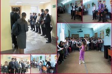 Учителей на входе в школу в этот день встречали учащиеся 9 классов с цветами. Накануне школа была празднично украшена плакатами.