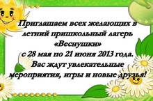 Скоро летний лагерь 26.04.2013