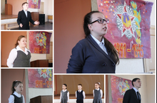 В преддверие Дня победы в школе состоялся конкурс чтецов "Поклонимся великим тем годам". Участие приняли все классы с 1 по 11 класс, всего 59 ребят. Соревновались конкурсанты в номинациях "Стихи на русском языке" (4 возрастные категории - "1 класс", "Младшее звено", "Среднее звено", "Старшее звено"), "Стихи на татарском языке", "Стихи на английском языке" и "Проза на руссском языке".