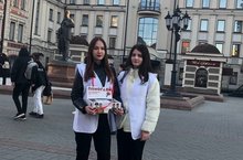 23 апреля юные волонтеры школы 114 города Казани Амирова Аида, Бикбаева Полина, Шакирова Аделина впервые приняли участие во Всероссийской акции " Красная гвоздика".