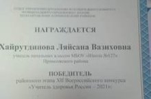 Поздравляем Хайрутдинову Ляйсан Вапзыховну - Победителя районного этапа Всероссийского конкурса "Учитель здоровья России 2021"