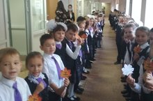 5 октября учащиеся первых классов встречали учителей "живым коридором" и поздравляли.