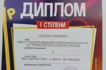 Поздравляем победителя Гаязову Камиллу международного конкурса по русскому языку, руководитель Ферафонтова А.И.