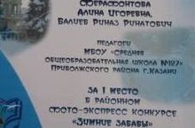 Поздравляем Ферафонтову А.И. и Валиева Р.Р. с дипломом за 1 место в районном фото-экспресс конкурсе "Зимние забавы" в номинации "Спорт зимой"