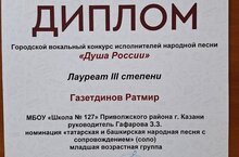 Поздравляем Газетдинова Ратмира, лауреата Городского вокального конкурса исполнителей народной песни., руководитель Гафарова З.З.