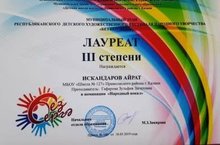 Поздравляем Искандерова Айрата лауреата 3 степени муниципального этапа Республиканскаго конкуса "Без бергэ", руководитель Гафарова З.З.