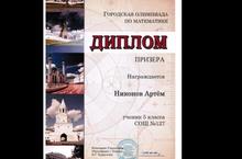 Поздравляем Никонова Артема, ученика 5 а класса с Дипломом призера городской олимпиады по математике . Руководитель Альмеева Алсу Айратовна