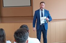 Перед учащимися 11 класса выступил региональный представитель программы кадрового резерва Московского финансово-промышленного университета "Синергия" А. А. Рублёв.