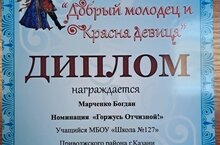 Поздравляем Марченко Богдана с диплом в районном конкурсе "Добрый молодец и красна девица 2023".