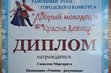 Поздравляем Сновскую Маргариту с диплом в районном конкурсе "Добрый молодец и красна девица 2023".