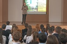 Сегодня для учащихся 9-11 классов выступила представитель "Поволжского государственного университета физической культуры, спорта и туризма".