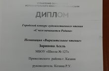 Поздравляем Зарипову Асель с Дипломом Городского конкурса художественного чтения "С чего начинается Родина", руководитель Козина Р.У.