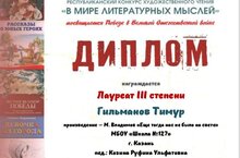 Поздравляем Гильманова Тимура с Дипломом 3 степени в Республиканском конкурсе литературного чтения "В мире литературных мыслей", руководитель Козина Р.У.