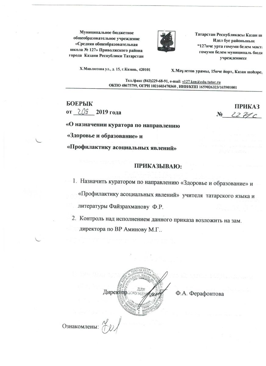 Школьный приказ об организации работы по профилактике правонарушений и ассоциальных явлений на 2019-20год