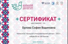 3 ноября 2021 года наши юнармейцы, куратор отряда БратухинаТ.В. и педагог- организатор Рябова О.А. приняли активное участие в просветительской акции Большой этнографический диктант 2021 и получили свои сертификаты. Мероприятие приурочено ко дню Народного Единства.