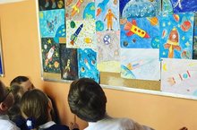 В честь этой знаменательной даты обучающихся 1-4 классов подготовили рисунки на космическую тематику. Ребята изобразили звезды, планеты, кометы, космические корабли и др. Работы, выполненные акварелью, гуашью, цветными карандашами и другими художественными материалами, получились яркими и индивидуальными.