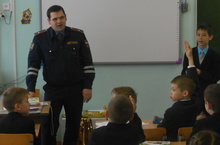 В рамках месячника ДЗД (День защиты детей) на открытое мероприятие для учащихся нального и среднего звена, которое проводили лидеры детской организации учащихся 10А классов, был приглашен инспектор ГИБДД, который с использованием мультимедийных средств обучения дидактического и раздаточного материала рассказал ребятам о правилах безопасного поведения