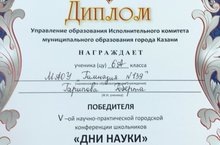 Поздравляем Гарипова Роберта, учащегося 6а класса, победителя секции «Иностранные языки» V городской научно-практической конференции «Дни науки» (учитель Сабирова Л.З.)