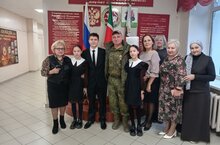 В музее "Прикосновение к судьбе" состоялась встреча учащихся и педагогов с участником СВО и его семьёй. Боец рассказал о фронтовых буднях, о боевых товарищах. Педагоги и ребята передали на фронт маскировочные сети, сладкие подарки.